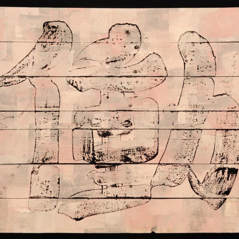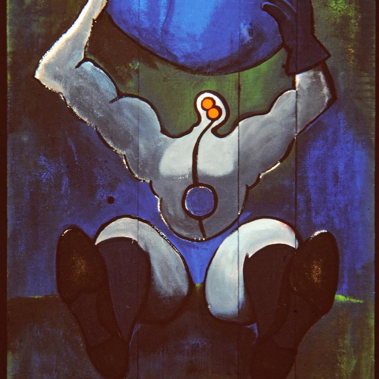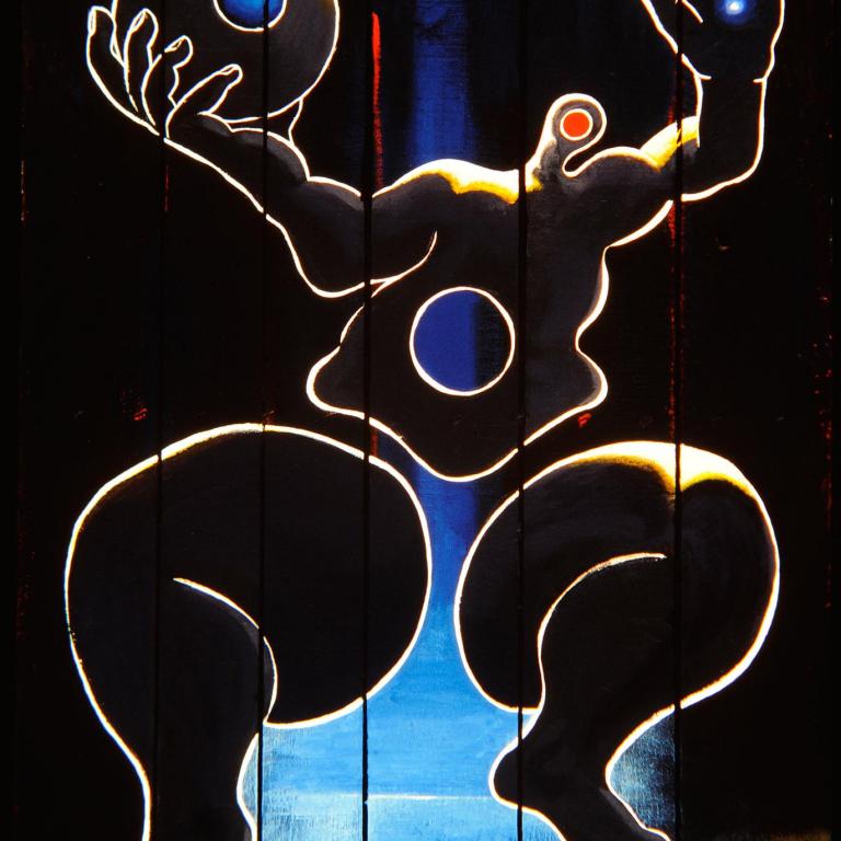 Das zweite, das dem Bild auf der Holzpalette einen speziellen Charakter verleiht, sind die nicht vorhandenen, die nicht bemalten Flächen, d.h. die Astlöcher und die Spalten zwischen den Brettern.